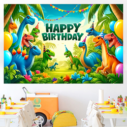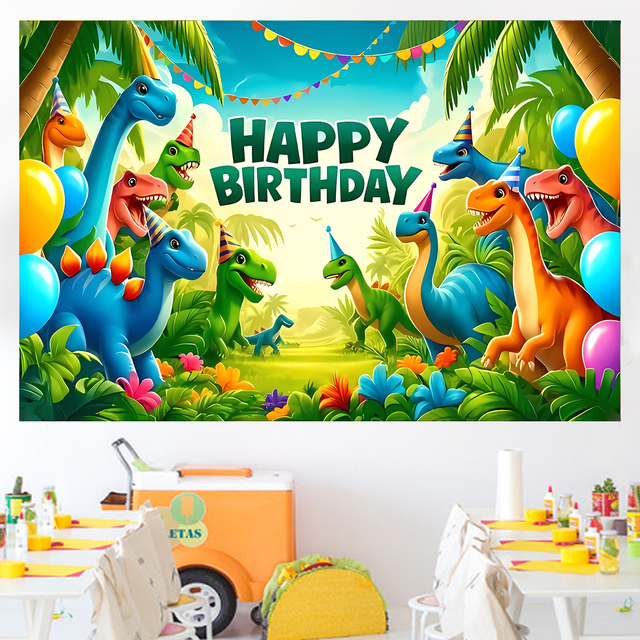 Selva bosque Animal telón de fondo dinosaurio de dibujos animados Feliz cumpleaños telón de fondo Banner para niños eventos decoraciones de fiesta