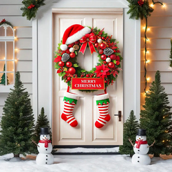 Feliz Navidad fiesta decorativa corona puerta cubierta Santa Navidad colgante puerta delantera Banner telón de fondo decoraciones para fiesta festiva