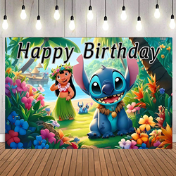 Suministros promocionales para fiestas Lilo y Stitch telón de fondo fiesta Feliz cumpleaños decoración Fondo telones de fondo