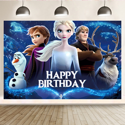 Suministros promocionales para fiestas Tema de Frozen Elsa Princesa Telón de fondo Chica Feliz cumpleaños Fiesta Decoraciones Telón de fondo