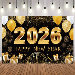 2026 장식 새해 복 많이 받으세요 배너 배경 7 * 5ft 골드 블랙 파티 장식 배너 배경 새해 사진 배경