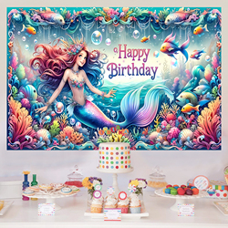 Фон с изображением русалки для вечеринки на день рождения, 7 Х5 футов
