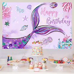 Фиолетовый хвост русалки тематический фон для вечеринки баннер для девушки с днем рождения украшения