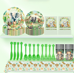 ชุดจานชามกระดาษแบบใช้แล้วทิ้งสำหรับปาร์ตี้พิมพ์ลายการ์ตูนป่าธีมปาร์ตี้วันเกิด