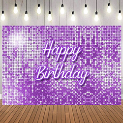 7 * 5ft เงาสีม่วงสุขสันต์วันเกิดฉากหลังผู้หญิงสาวเจ้าหญิงปาร์ตี้โต๊ะตกแต่งผนังพื้นหลังแบนเนอร์