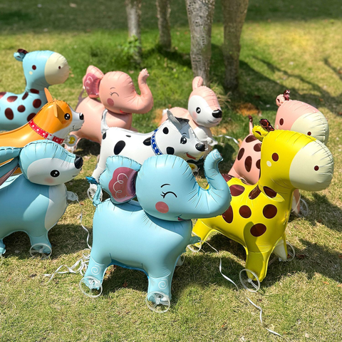 Tekerlekler üzerinde tekerlek yürüyüş ile sevimli yürüyüş hayvan folyo balonlar fil köpek kedi tavşan folyo karakter balon çocuklar için