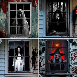 Korkunç cadılar bayramı pencere kapak süslemeleri 71x35in korku kapı afiş ön cadılar bayramı kapı duvar sundurma süslemeleri için